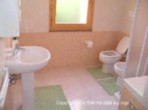 Badkamer: Wastafel, douche, bidet, toilet, fohn.
