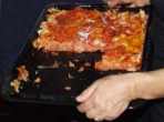 2) Stendere i fogli di pani carasau in modo da coprire tutti gli spazi della teglia.